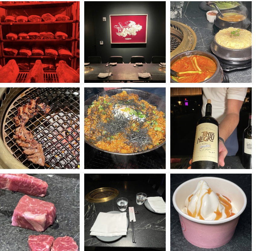 The most popular item on the menu is the Butcher’s Feast. At $58 per person, it is also a relative bargain. It includes 4 select cuts of meat that add up to 8oz. Adrian started the cooking process with the hanger steak, then the 45-day dry-aged ribeye, followed by the flat iron Cote steak, and ending with my favourite, a marinated short rib, that was out of this world. This was all accompanied by an amuse-bouche of vegetables, a scallion salad, and red leaf lettuce with ssamjang sauce to wrap the meat with. It also came with a savoury egg soufflé, and two stews as well as rice. The feast ends with a delicious soft serve with a soy caramel glaze. We also added some tender and flavourful A5 Japanese Wagyu, just because. Adrian said one of his favourite side dishes is the kimchi Wagyu paella, and we were glad we took his advice because it was a notable highlight. The menu also includes a steak Omakase experience, for real beef enthusiasts, which gives you the grand tour of the best cuts at $165 per person. Or you have the option of ordering a la carte.
