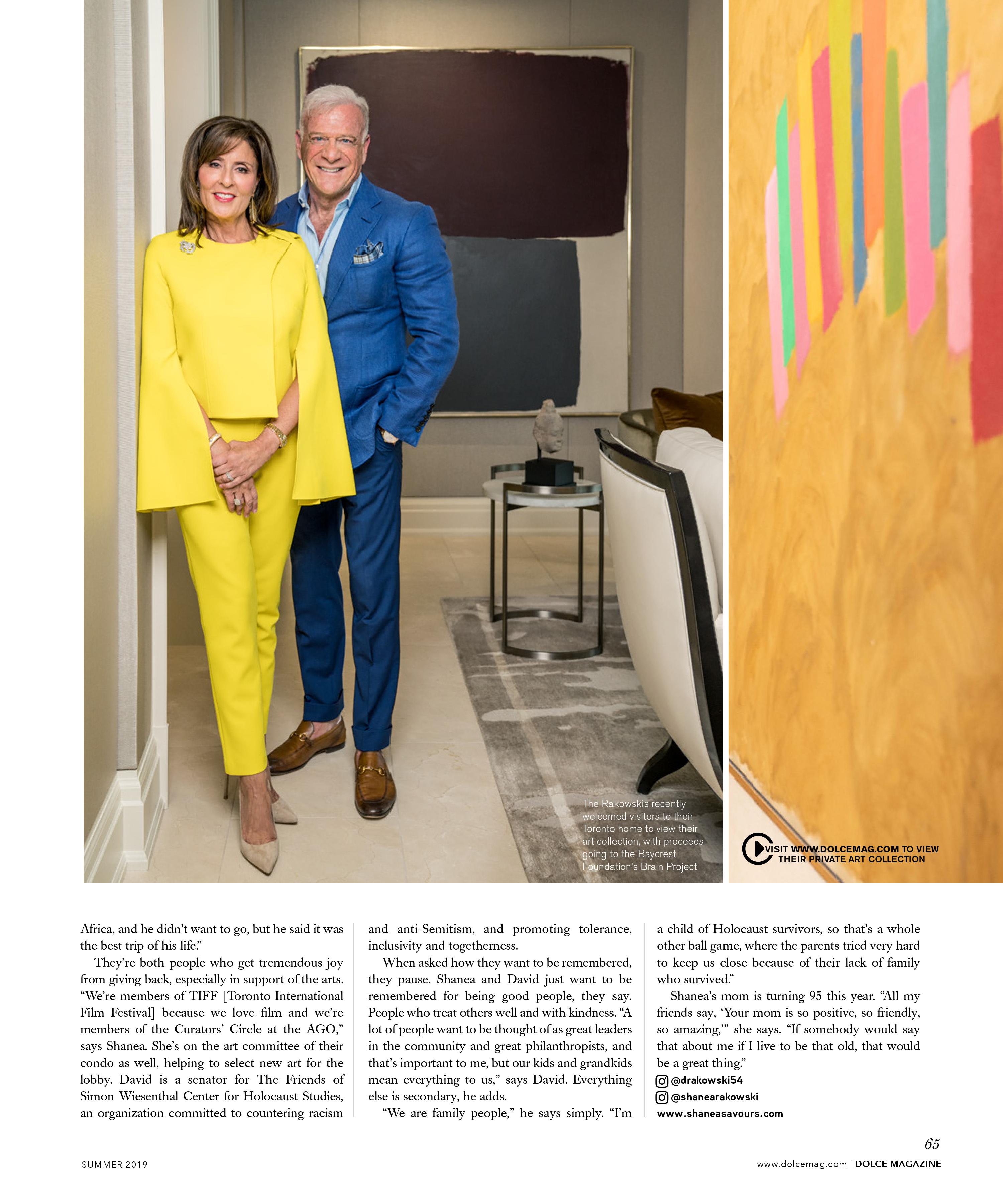 Philanthropists Shanea and Dr. David Rakowski know how to embrace life, and they fill it with everything that speaks to them, from art to travel to food. And Shanea’s blog, Shanea Savours, showcases it all. But perhaps even more important is their love for each other, for their kids and their grandkids — and their joy in giving back to the community.