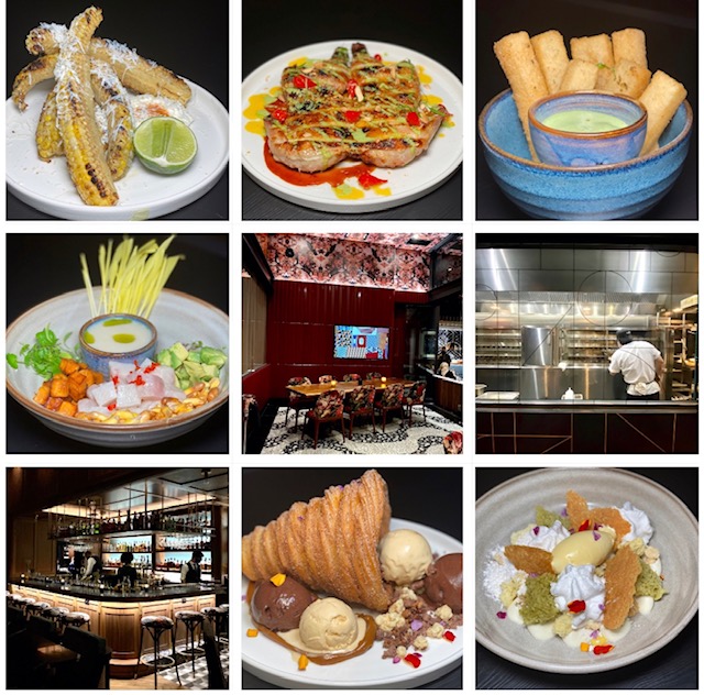 The restaurant is large, colourful and dramatic in design. At 10,000 square ft. with high ceilings and several rooms, I felt totally safe dining there. They seated us at least 20 feet from the next diners. The walls feature South American pop and travel art with a nod to the Panama games and Pam Am airways. There are numerous model airplanes throughout, plus walls painted with the stripes of airmail postcards. Vintage sports memorabilia are on the shelves in the front room and handsome herringbone and mosaic floors or mosaic floors cover the private dining room. There are actually four separate dining areas. The front room or front bar, patio and indoor lounge is called the Pan Am lounge. The main dining room is the Comedor Lounge that has several booths and individual tables. The Tuscano is a colourful dining space, with a sliding glass wall for privacy. The back room is called the Corsair and has a separate modern cocktail bar and special program, and different menu from the front bar, where they make modern visually stunning, theatrical, molecular and showy drinks, some as pricey as $42. Those are the “porthole ” drinks where they infuse things like figs, maple, chai, sage, apple, cinnamon, star anise etc.