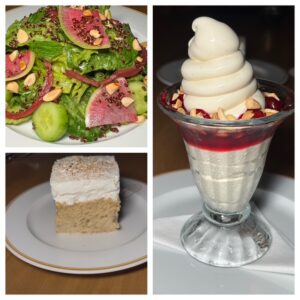 Not everything hit the mark. The “no-filler” crab cakes were a bit odd, with little filling and an unusual topping, while the zucchini fritters were just fair. But there were standouts: the house-baked Parker rolls with molasses butter were addictive, and the spinach–artichoke dip was rich and satisfying. My fish entrée arrived overly salted, but the kitchen quickly corrected