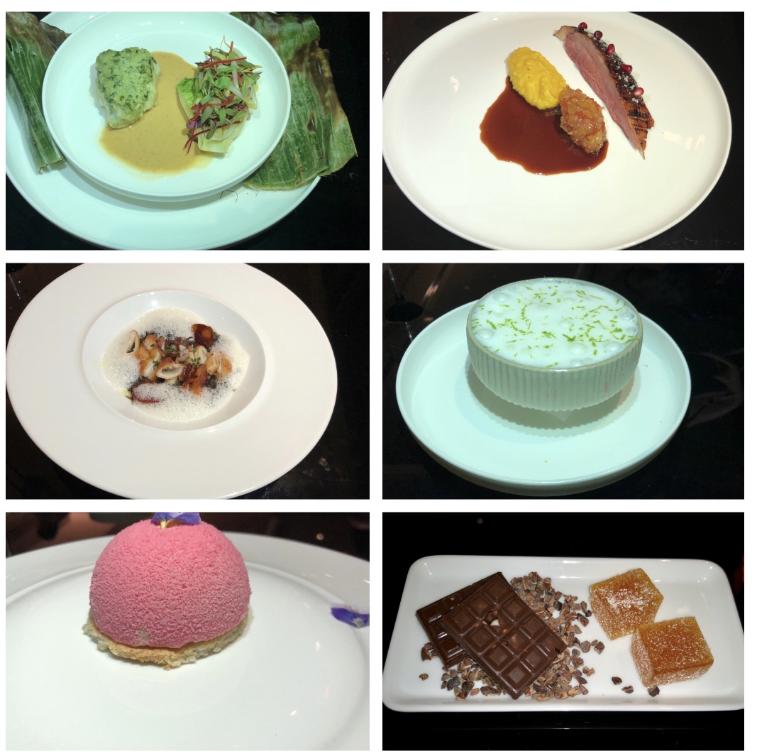 Our mains were a light grouper, served with the charred banana leaf it was cooked in, in a kaffir lime red curry, with warm Vietnamese gem lettuce salad. The diver scallop and squid a la plancha, with chorizo, and beluga lentils was a fabulous dish, but I honestly could not taste or see any scallops. The painted bird, a perfectly cooked roasted duck, with Anson Mills grits, awesome moonshine chutney in a pomegranate jus, is also worthy of praise. There is an additional international, artisanal cheese course if you can find the room.