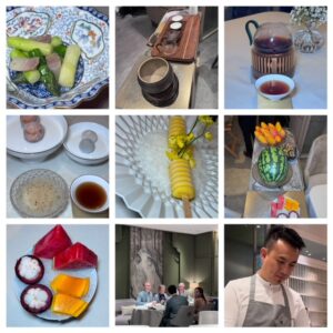 The service at Wing was impeccable, and the food was artistically presented, celebrating the best seasonal ingredients. Guests are welcomed with Taiwanese Oolong tea, and a variety of teas are served throughout the meal, each hand-selected by the chef’s wife. We opted for a premium wine pairing, starting with Krug 2016, as a chef is has been a Krug ambassador for 6 years. Dessert was served from a beautifully arranged trolley featuring exotic seasonal fruits and coconut sorbet. The chef also delighted us with a nostalgic creamsicle he used to make his mother, crafted with a banana shell, vanilla ice cream, and mango jam, followed by an assortment of sweet mignardises.