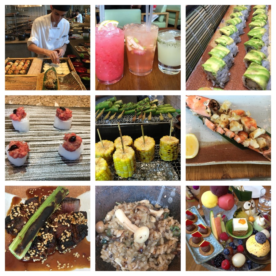 The menu is not “breakfasty” at all. The only egg in sight was served in a soup-like light soy broth with cold ramen noodles. But boy oh boy, are there great selections. The buffet is HUGE. Please come hungry. There is a sushi and sashimi area, with vast amounts of premium sushi, sashimi and maki rolls. A robata counter, which also had a selection of soups, salads, cold and hot robata dishes. I was pleased to see their signature corn and their fabulous ribs on the buffet. You can go up as often as you like. FYI, for those so inclined, there are bottomless drinks such as Japanese sangria, sake, bellini’s, mojitos, margaritas, champagne and so on.